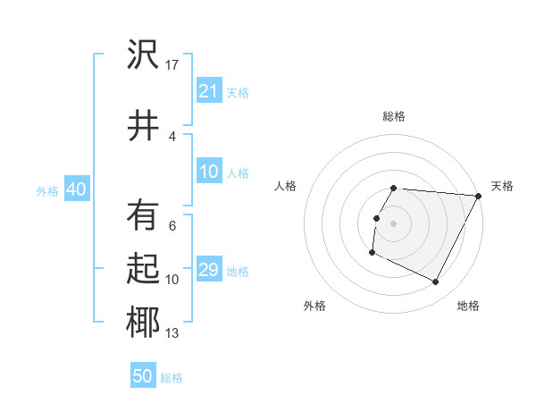 沢井 有起椰さんを姓名の画数から五運を鑑定