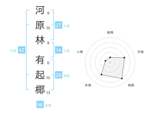 河原林 有起椰さんを姓名の画数から五運を鑑定