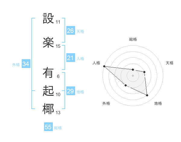 設楽 有起椰さんを姓名の画数から五運を鑑定
