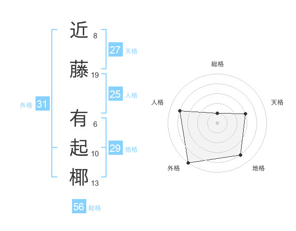 近藤 有起椰さんを姓名の画数から五運を鑑定