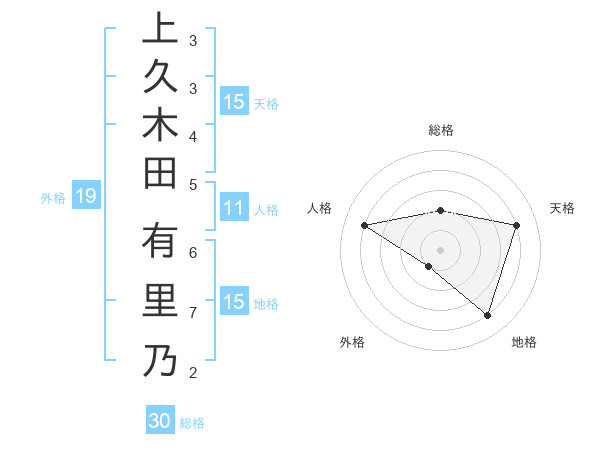 上久木田 有里乃さんを姓名の画数から五運を鑑定