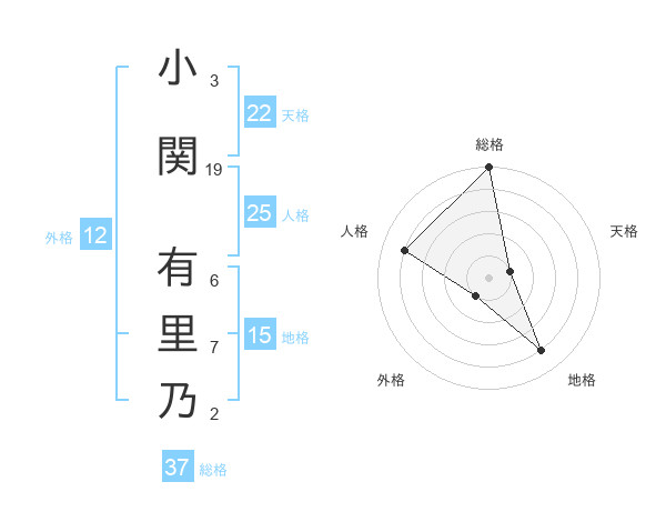 小関 有里乃さんを姓名の画数から五運を鑑定