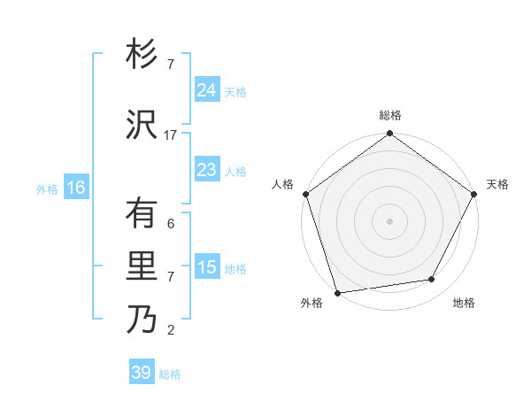 杉沢 有里乃さんを姓名の画数から五運を鑑定