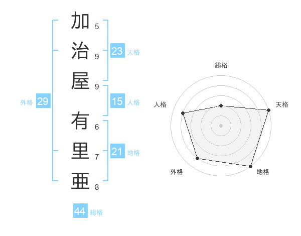 加治屋 有里亜さんの総格は44画の2点