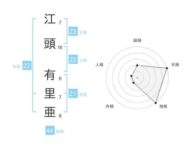江頭 有里亜さんを姓名の画数から五運を鑑定