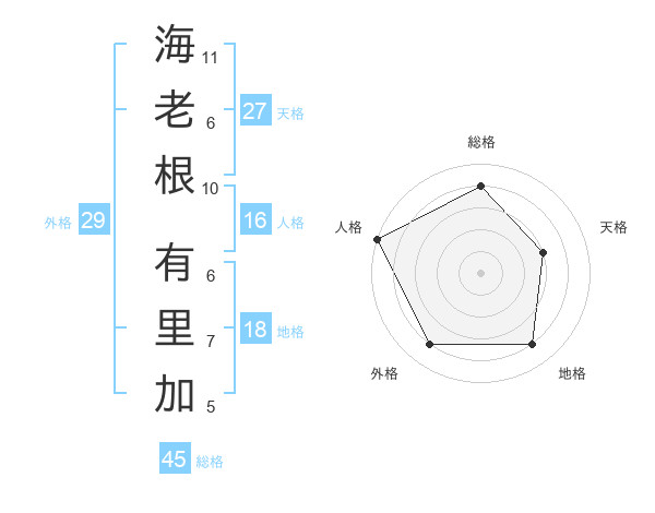 海老根 有里加さんの総格は45画の4点!