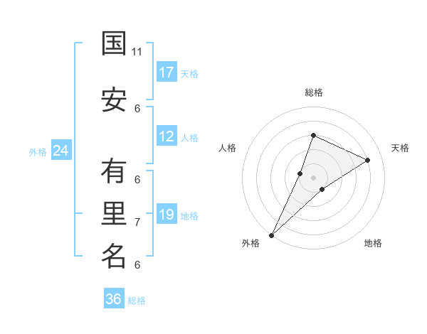 国安 有里名さんの天格は17画の4点!