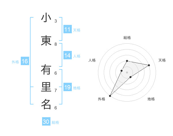 小東 有里名さんの外格は16画の5点!