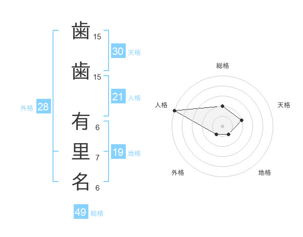 歯歯 有里名さんを姓名の画数から五運を鑑定
