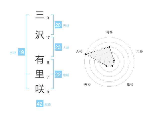 三沢 有里咲さんを姓名の画数から五運を鑑定