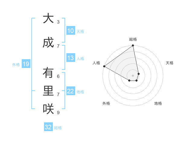 大成 有里咲さんを姓名の画数から五運を鑑定