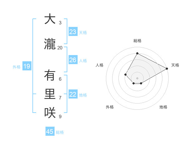 大瀧 有里咲さんを姓名の画数から五運を鑑定