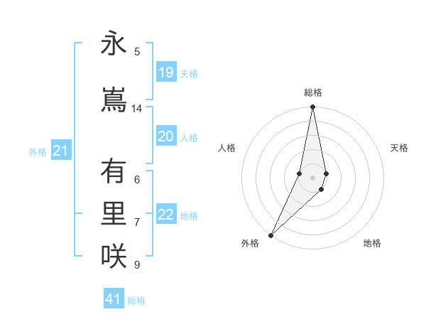 永嶌 有里咲さんの外格は21画の5点!