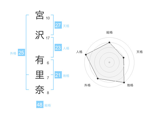 宮沢 有里奈さんを姓名の画数から五運を鑑定