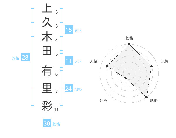 上久木田 有里彩さんを姓名の画数から五運を鑑定
