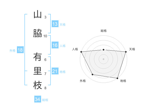 山脇 有里枝さんを姓名の画数から五運を鑑定