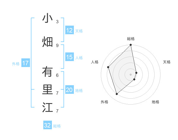 小畑 有里江さんを姓名の画数から五運を鑑定