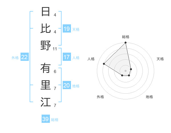 日比野 有里江さんを姓名の画数から五運を鑑定