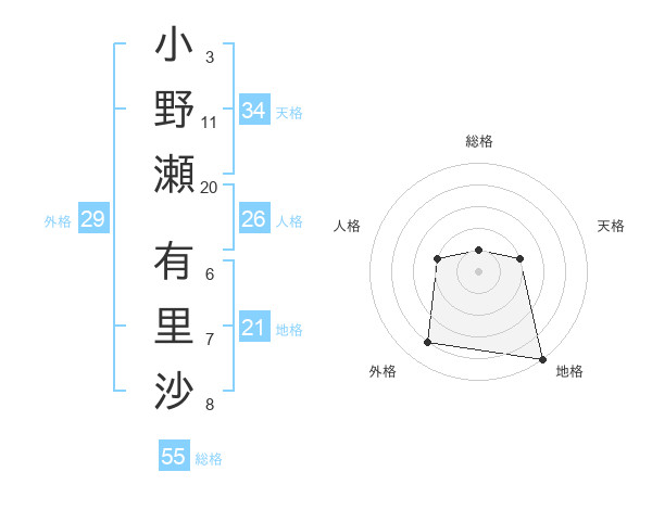 小野瀬 有里沙さんを姓名の画数から五運を鑑定