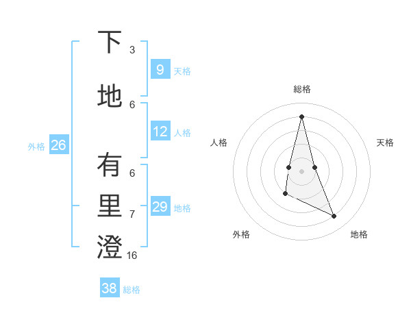 下地 有里澄さんの総格は38画の4点!