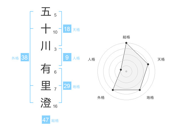 五十川 有里澄さんを姓名の画数から五運を鑑定