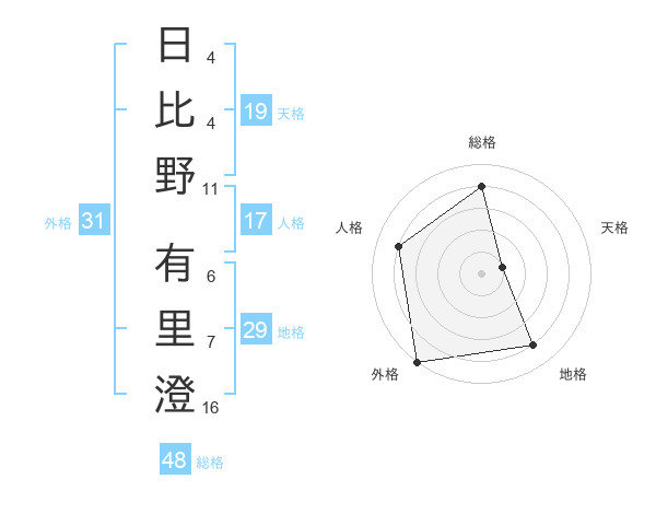 日比野 有里澄さんの外格は31画の5点!