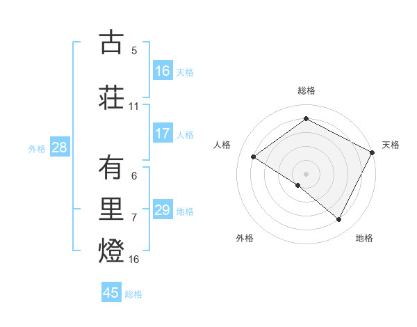 古荘 有里燈さんを姓名の画数から五運を鑑定
