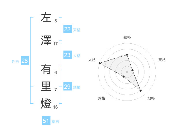 左澤 有里燈さんの総格は51画の3点!