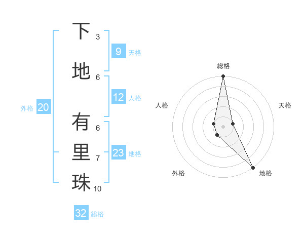 下地 有里珠さんの総格は32画の5点!