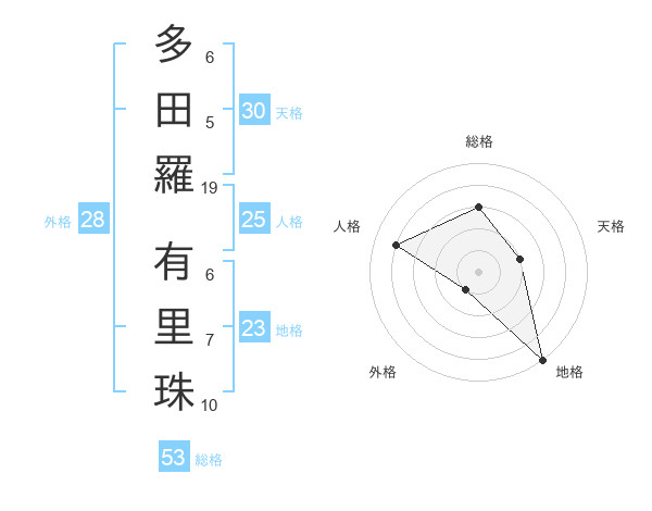 多田羅 有里珠さんを姓名の画数から五運を鑑定