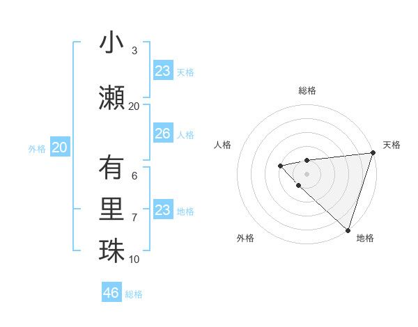 小瀬 有里珠さんを姓名の画数から五運を鑑定