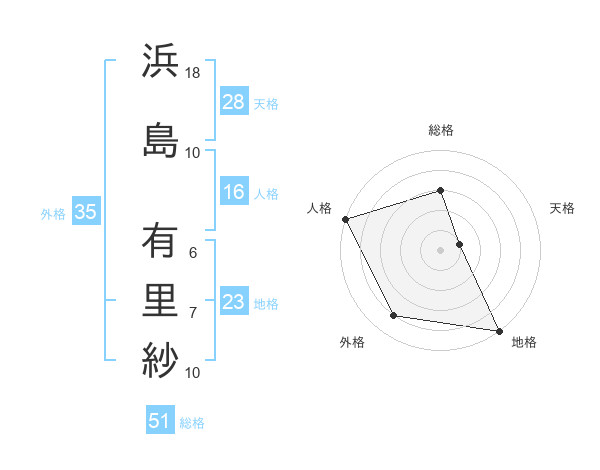 浜島 有里紗さんを姓名の画数から五運を鑑定