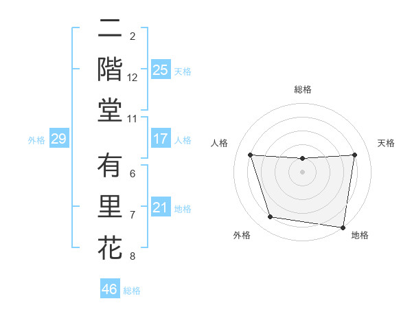 二階堂 有里花さんを姓名の画数から五運を鑑定