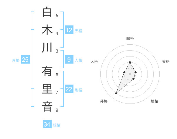 白木川 有里音さんを姓名の画数から五運を鑑定