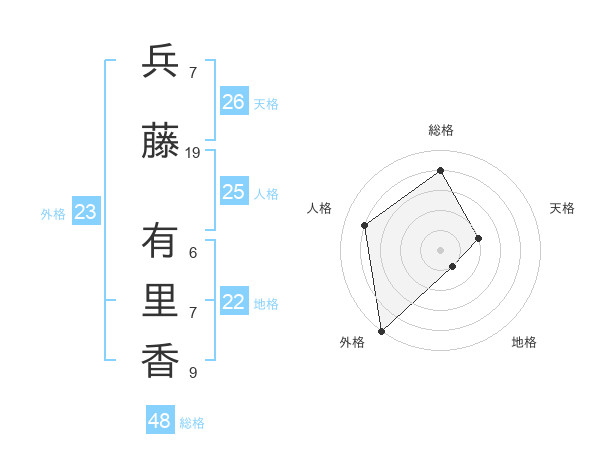兵藤 有里香さんを姓名の画数から五運を鑑定
