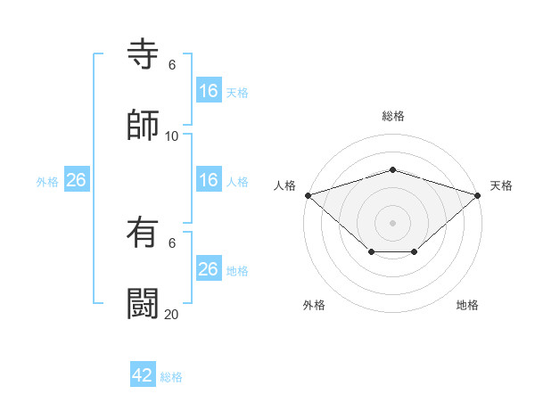 寺師 有闘さんを姓名の画数から五運を鑑定
