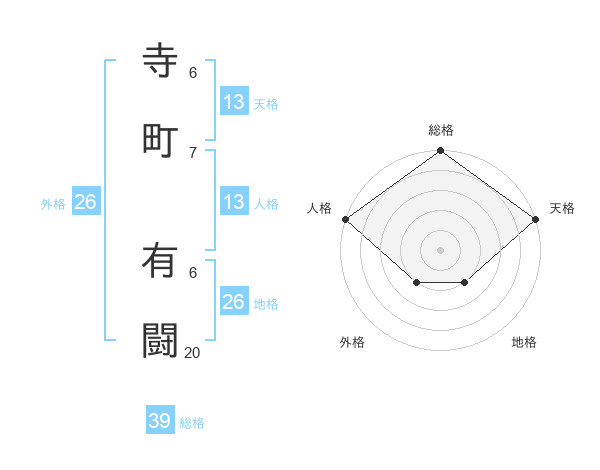 寺町 有闘さんを姓名の画数から五運を鑑定