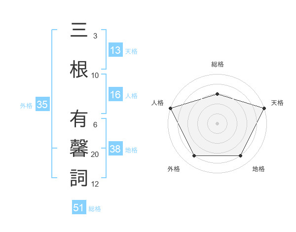 三根 有馨詞さんを姓名の画数から五運を鑑定