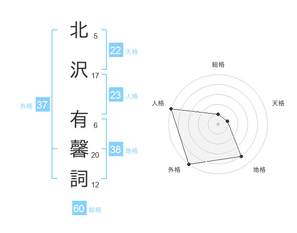 北沢 有馨詞さんの外格は37画の5点!