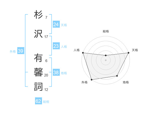 杉沢 有馨詞さんを姓名の画数から五運を鑑定