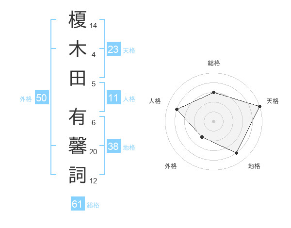 榎木田 有馨詞さんの天格は23画の5点!