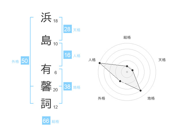 浜島 有馨詞さんを姓名の画数から五運を鑑定