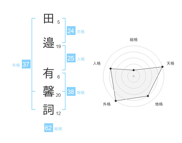 田邉 有馨詞さんを姓名の画数から五運を鑑定