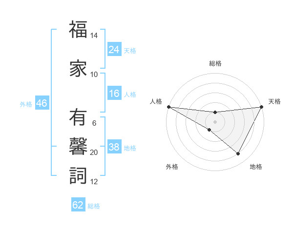 福家 有馨詞さんの外格は46画の1点!