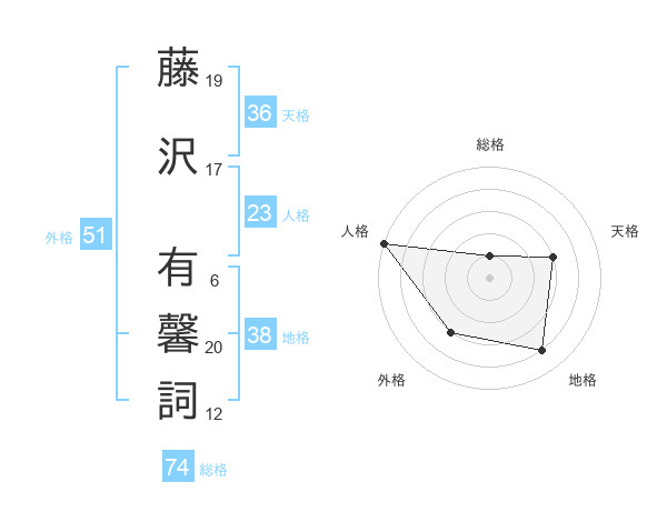 藤沢 有馨詞さんを姓名の画数から五運を鑑定