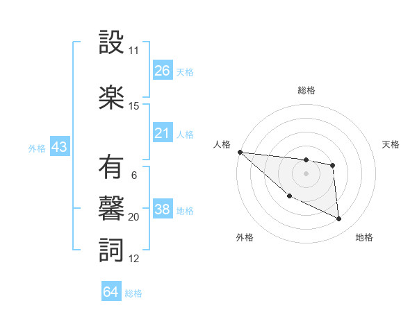 設楽 有馨詞さんを姓名の画数から五運を鑑定