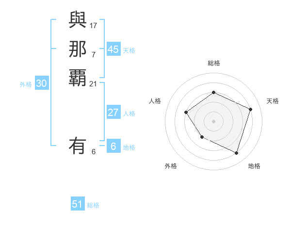 與那覇 有さんの総格は51画の3点!