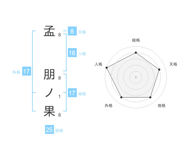 孟 朋ノ果さんを姓名の画数から五運を鑑定