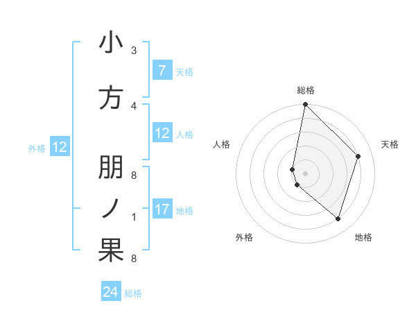 小方 朋ノ果さんを姓名の画数から五運を鑑定