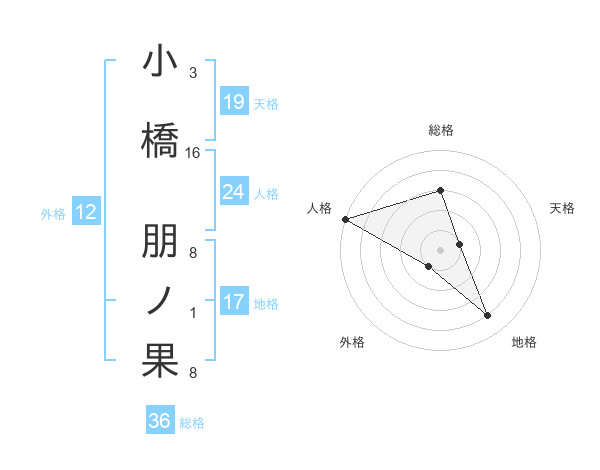 小橋 朋ノ果さんを姓名の画数から五運を鑑定